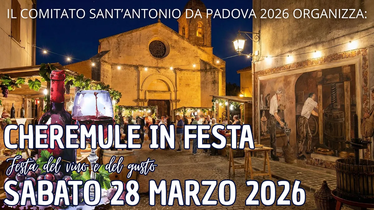 Sabato 28 marzo 2026, il suggestivo borgo di Cheremule, situato nella provincia di Sassari, si appresta ad accogliere una nuova edizione di Cheremule in Festa – Festa del vino e del gusto. L'iniziativa, promossa con cura dal Comitato Sant’Antonio da Padova 2026, nasce per esaltare l'identità enogastronomica sarda e sostenere la valorizzazione dei prodotti agroalimentari a chilometro zero, trasformando il centro storico in un dinamico punto di aggregazione culturale e conviviale.