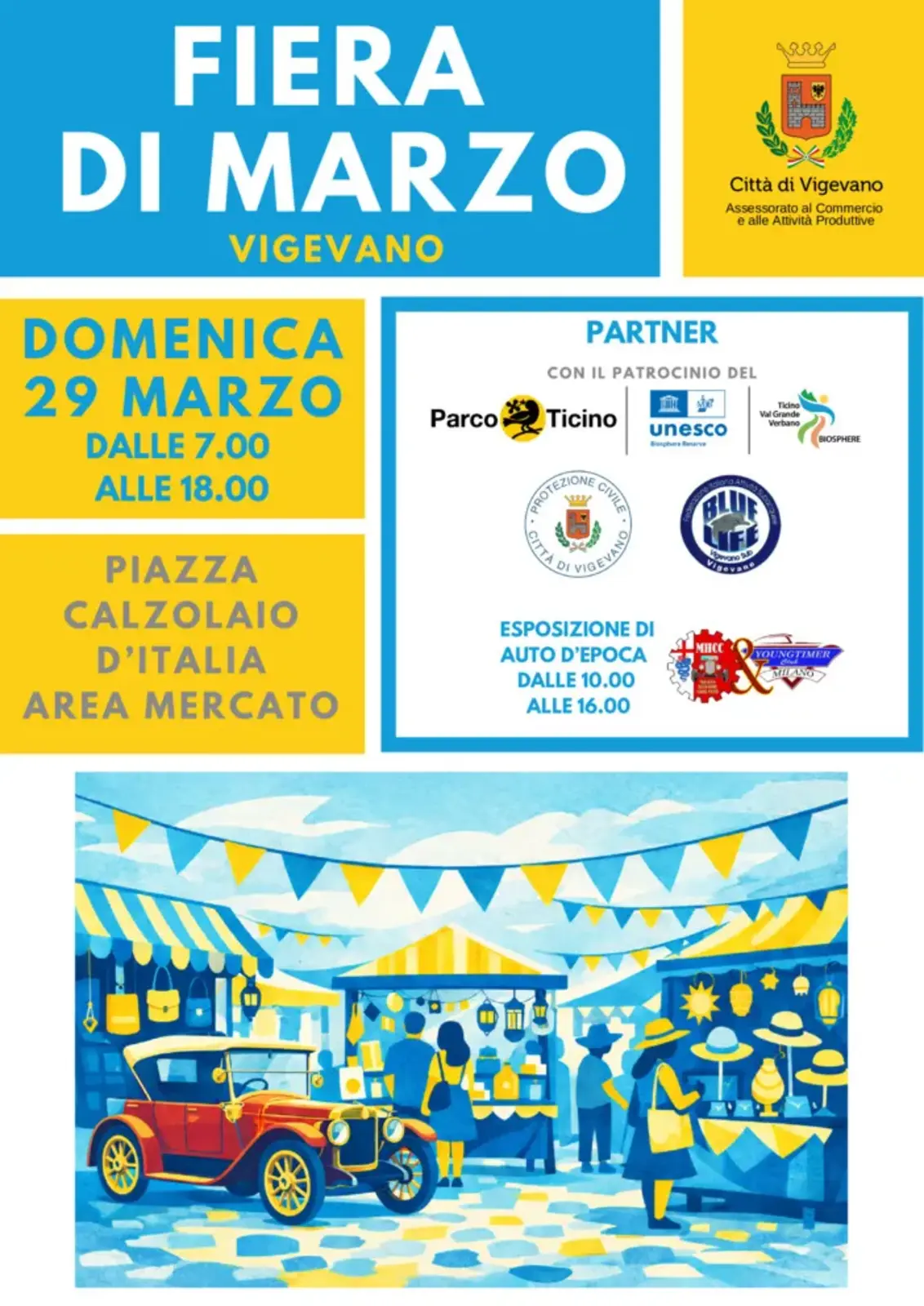 La Fiera di Marzo 2026 torna a Vigevano il 29 marzo: una giornata dedicata all'artigianato, all'intrattenimento e alla mostra di auto d'epoca in Piazza Calzolaio.